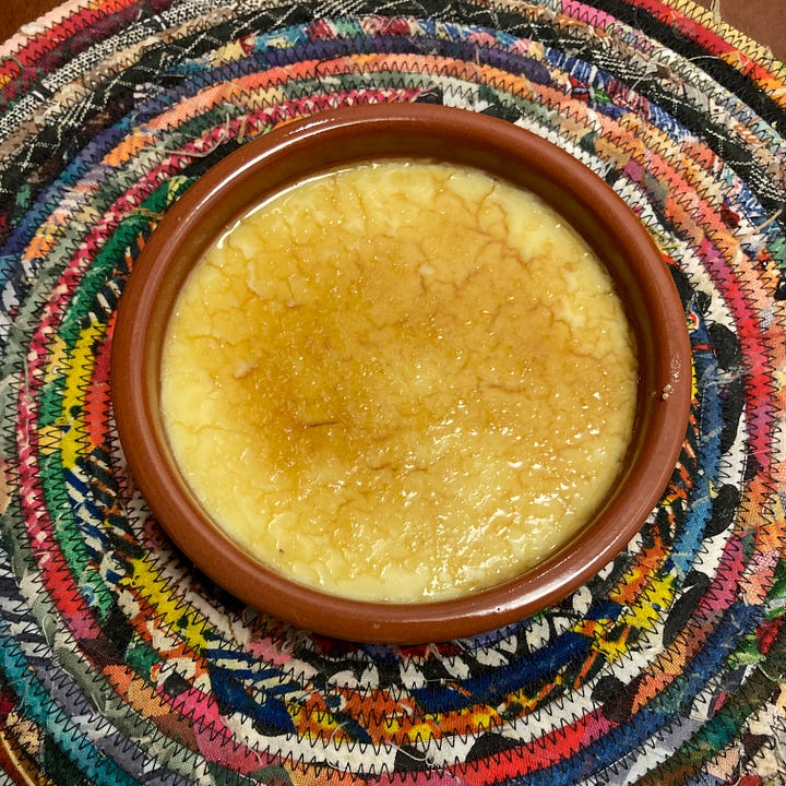 Crema Catalana (from Cataluña) was one of the first desserts I tried in Spain - and it is delicious. It is like arroz con leche without the arroz and with a whole lot more thickness and creaminess. So…not really at all like arroz con leche?